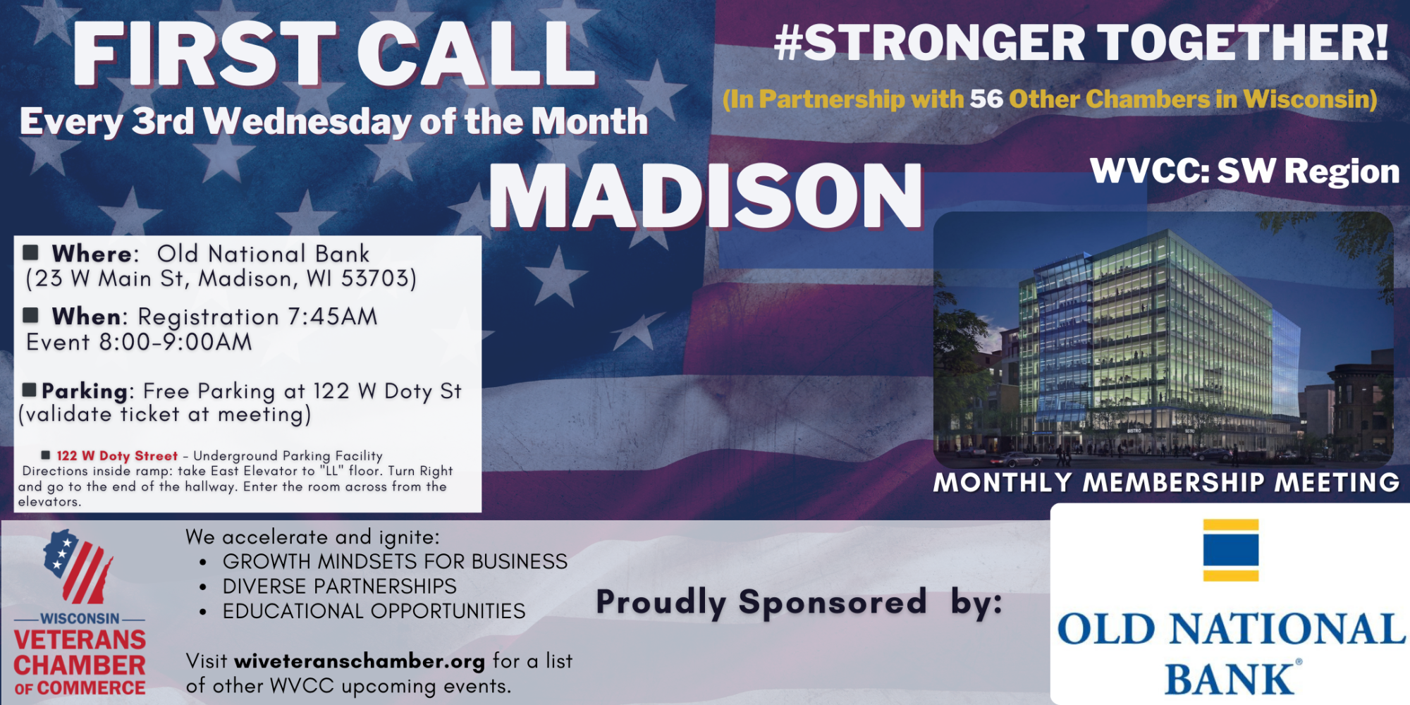 Please join us for our monthly SW WI Region chamber meeting to discuss timely topics affecting veteran-owned and veteran-friendly businesses with opportunities to network while on-site. We look forward to seeing you there! *There is no cost to attend this meeting.
