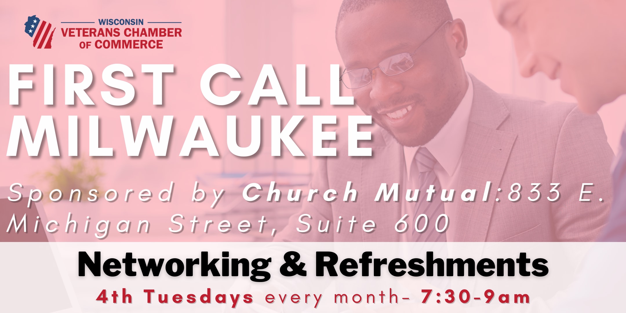 Join us for First Call Milwaukee sponsored by Church Mutual Insurance, on the 4th Tuesday of every month. We will gather in the esteemed Dr. George Koonce Innovation Center Conference Room. Please park on the first level in Visitors Parking at 833 E Michigan Street. Church Mutual will generously provide a validation sticker for up to 2 hours of parking. Expect a warm welcome as you introduce yourself and your businesses to the group. This is a relaxed setting designed to foster authentic connections. Refreshments generously provided by Church Mutual. Invite a friend or colleague to join our collaborative community. Please register by noon the day prior, to meet building security requirements. See you there!Images