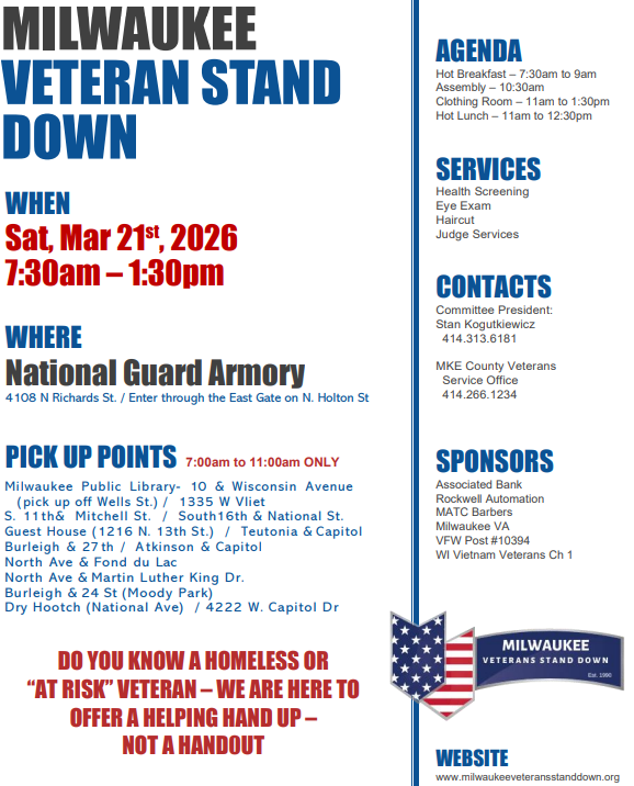 Stand Down is designed and intended to bring a wide array of pre-existing specialized resources together at one location and to provide a comprehensive therapeutic program to homeless and at-risk veterans that integrates employment, housing, medical, legal and a broad range of social services.