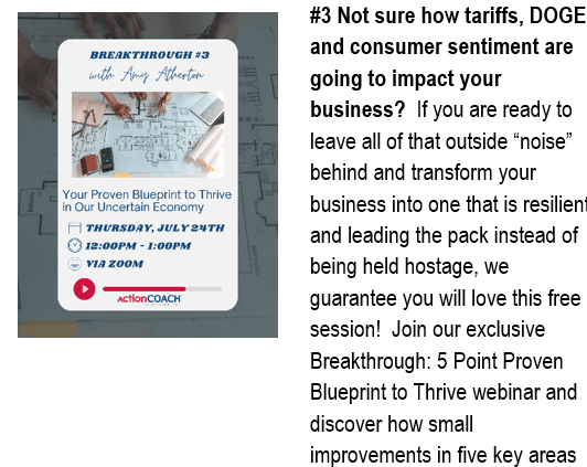 Summer Breakthrough Series, you get bright minds with BIG ideas to help you change behavior and improve your business. Register for the Webinars you'd like to attend. If you cannot attend live, ActionCOACH will send you the recording.