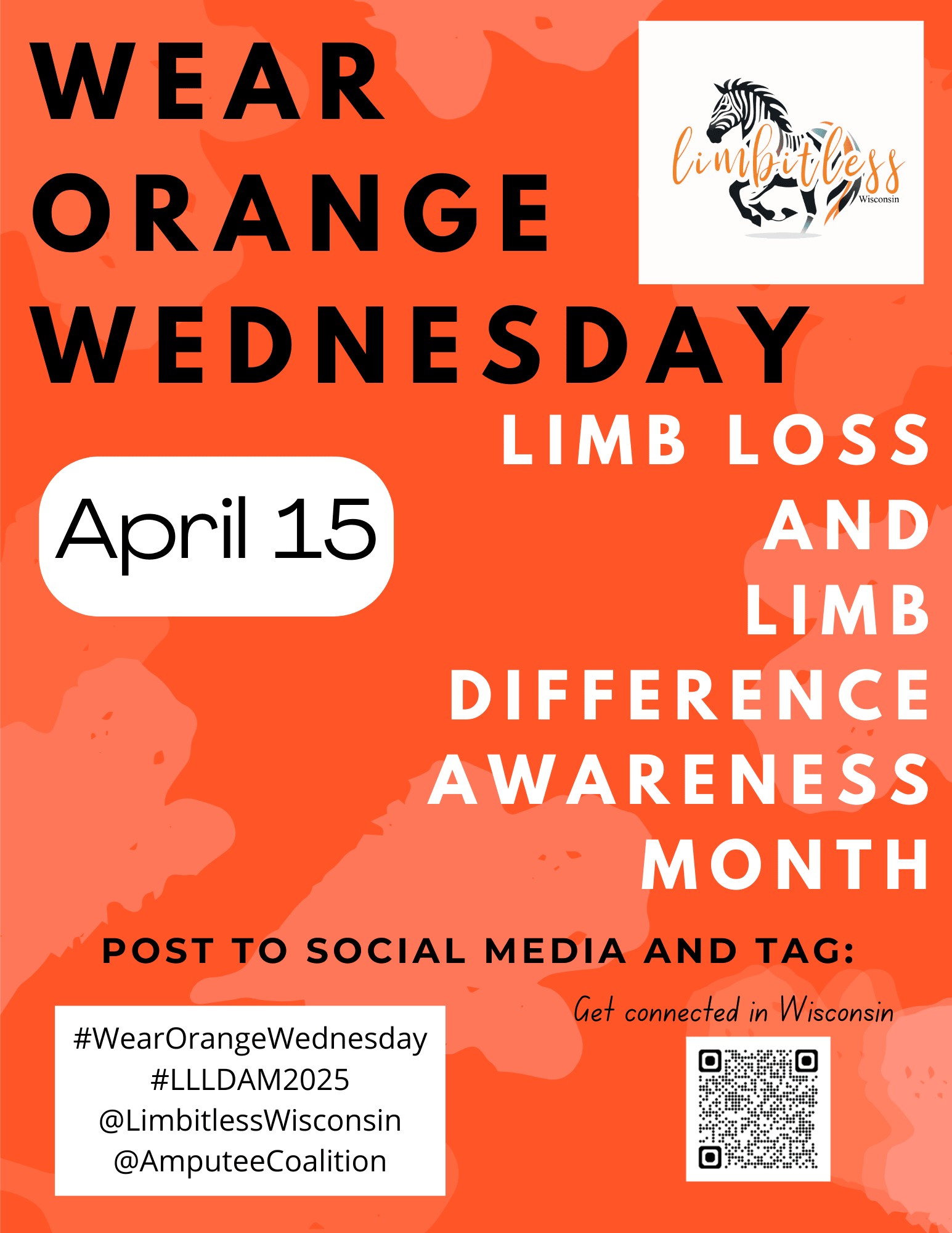 Wearing orange is a National initiative spearheaded by the Amputee Coalition headquartered in Washington DC. Wisconsin is focusing on one day in April to show your support!
