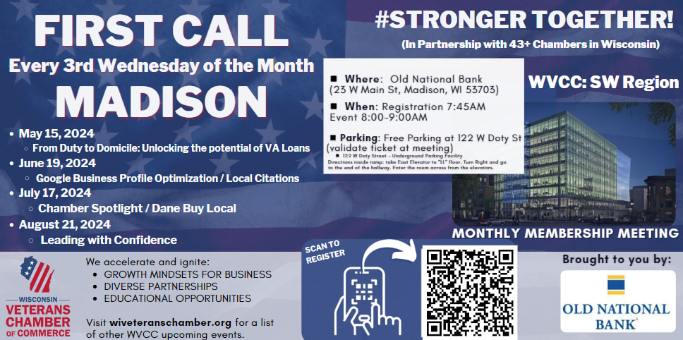 Please join us for our monthly SW WI Region chamber meeting to discuss timely topics affecting veteran-owned and veteran-friendly businesses with opportunities to network while on-site. We look forward to seeing you there!