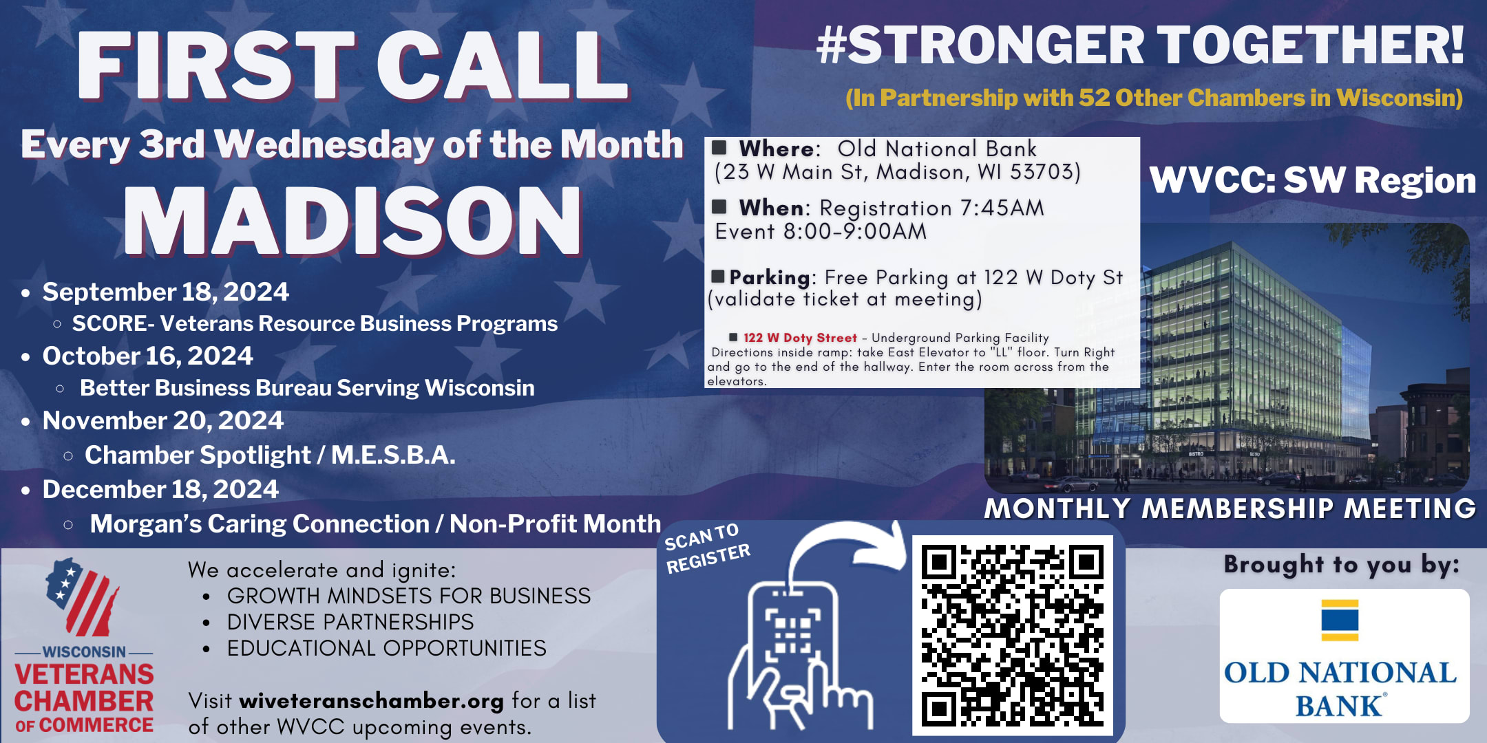 Please join us for our monthly SW WI Region chamber meeting to discuss timely topics affecting veteran-owned and veteran-friendly businesses with opportunities to network while on-site. We look forward to seeing you there!